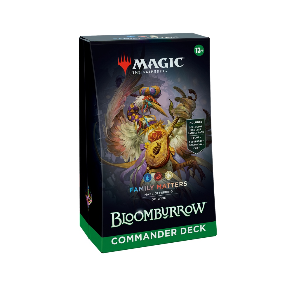 • CONTENTS—1 ready-to-play Bloomburrow Commander Deck, a 2-card Collector Booster Sample Pack, 10 double-sided tokens, 1 life tracker, and 1 deck box